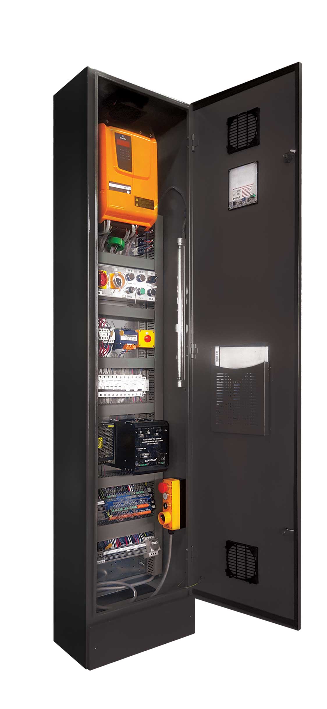 * Dahili UPS Akü şarjlı kata getirme sistemi (enerji kesintilerinde acil kurtarma).